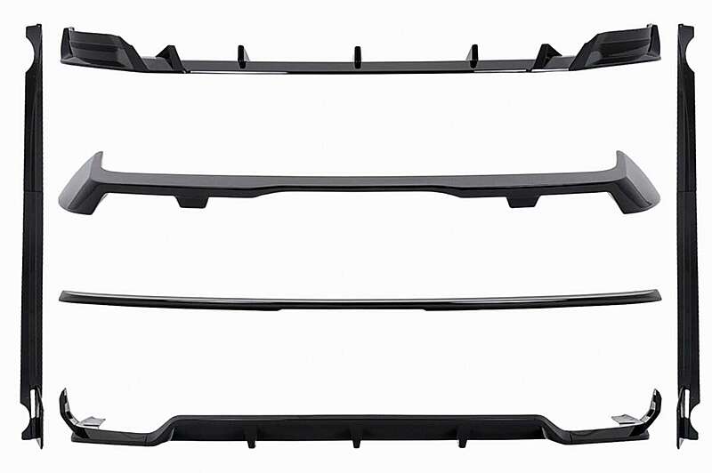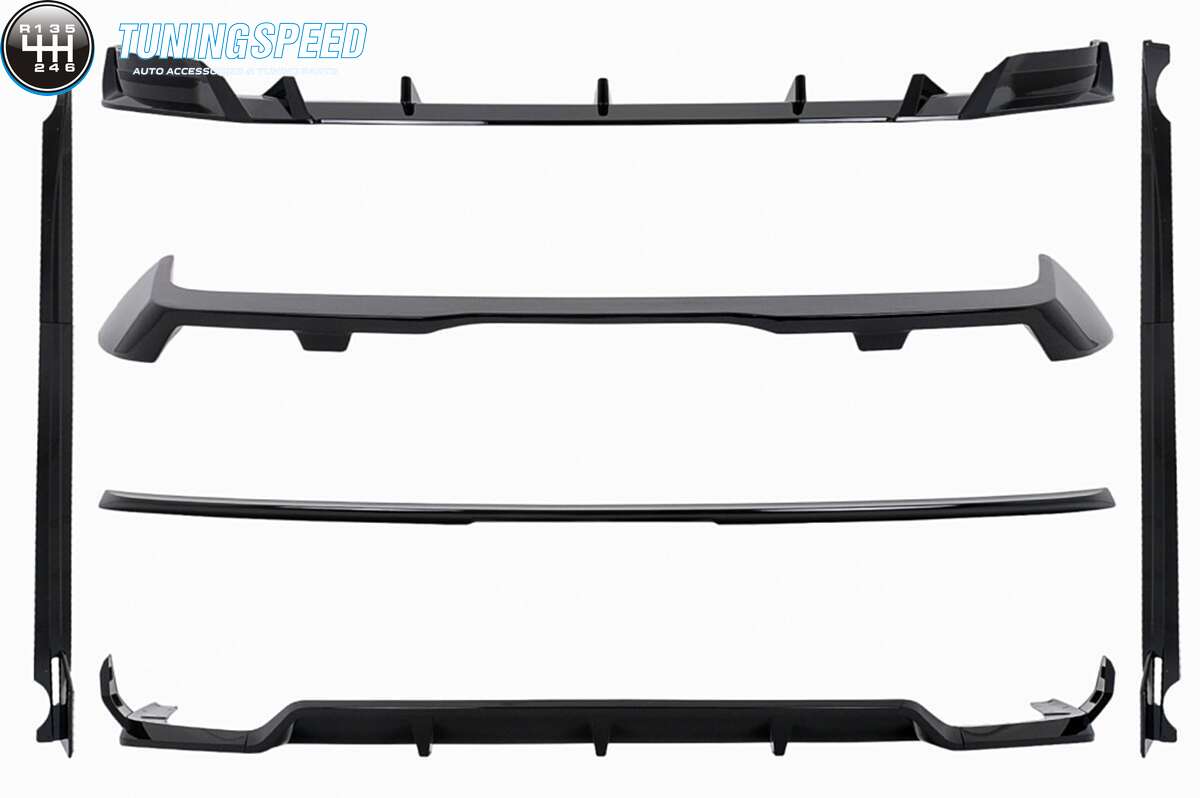 The front lip, rear diffuser extension, spoiler and side skirts extensions crafted in high-quality plastic
