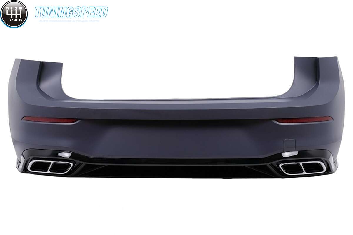 Equipped with tow hook cover, rear bumper reflectors, rear bumper diffuser with exhaust muffler tips ornaments.