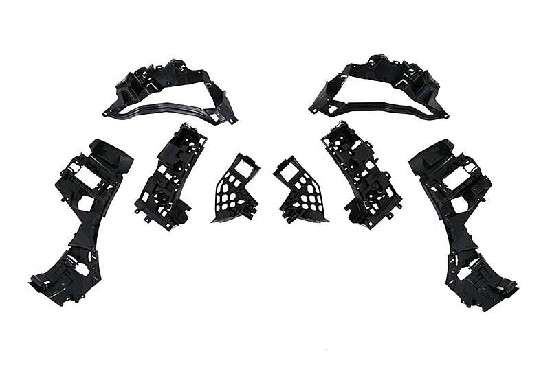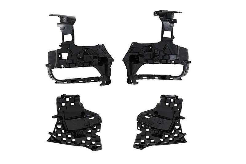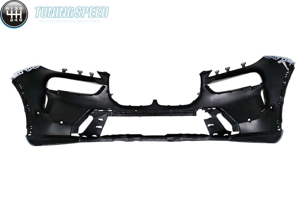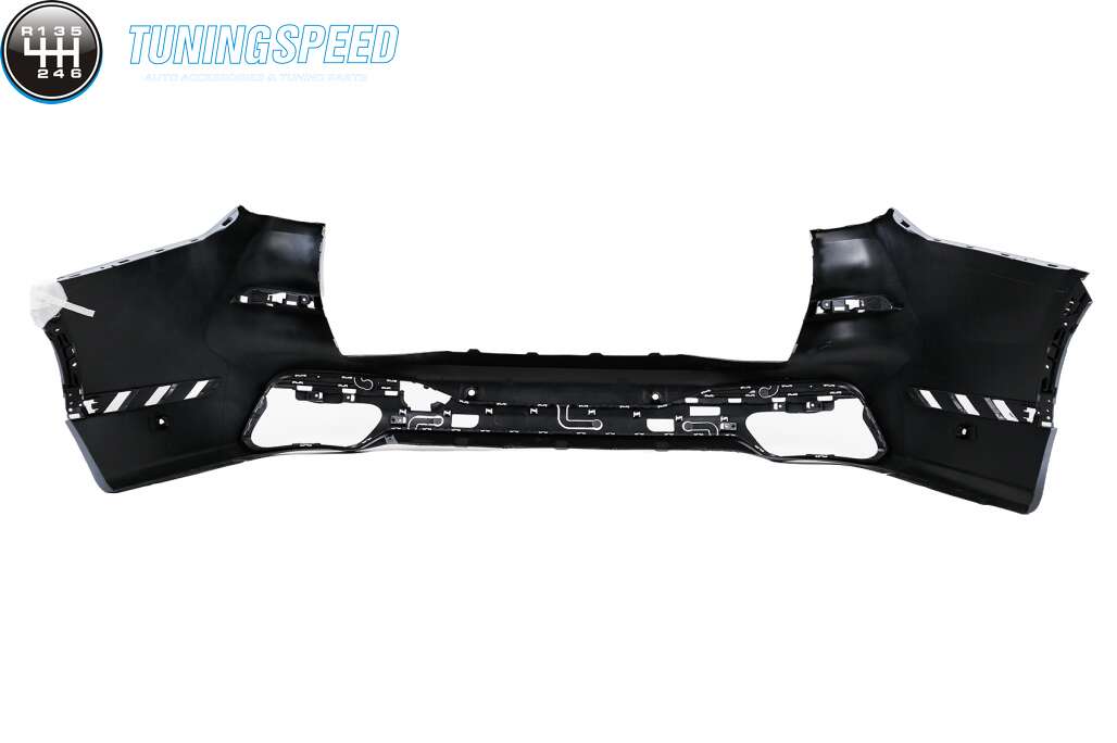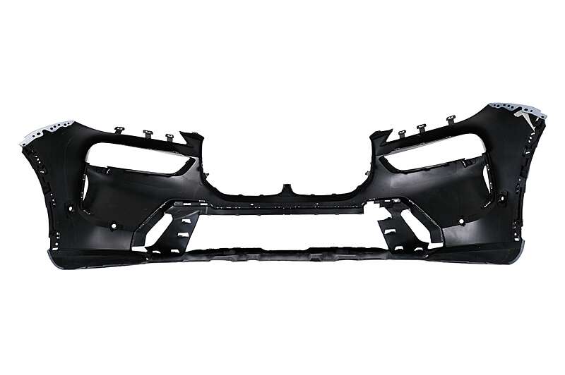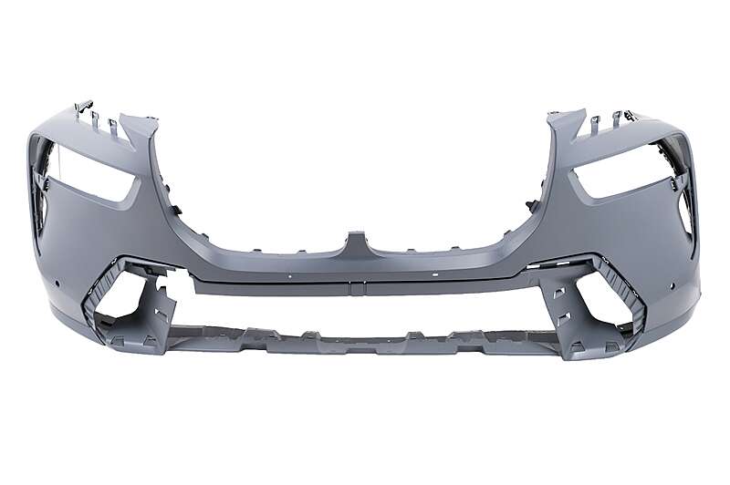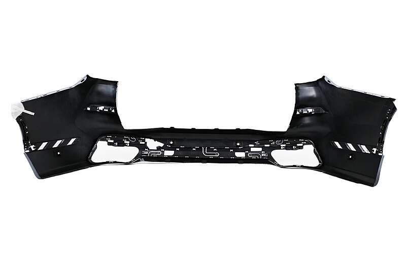 Front bumper equipped with central grille, lower grille, PDC holders, and front bumper ornaments