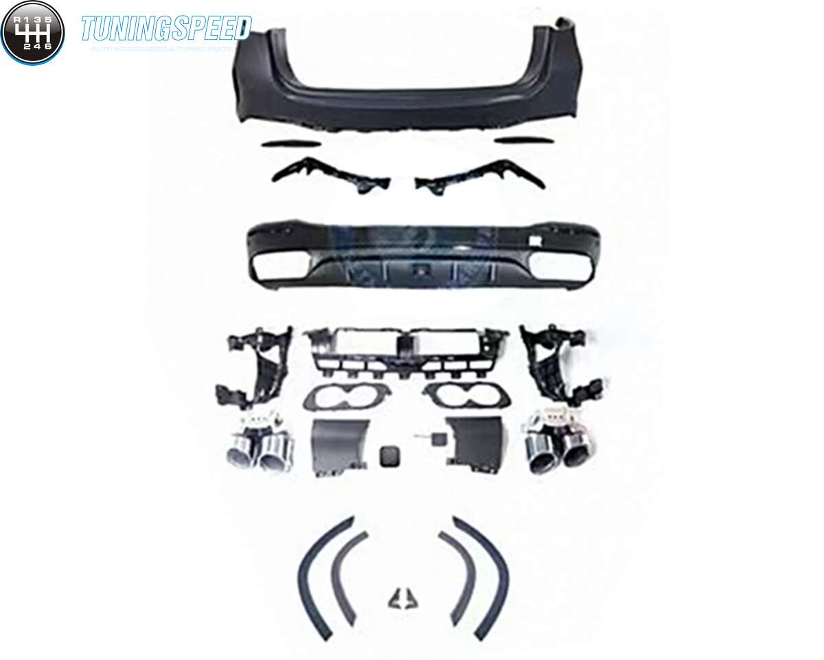 Rear bumper made of high-quality PP (polypropylene) and equipped with air diffuser with double outlets for twin-muffler tips