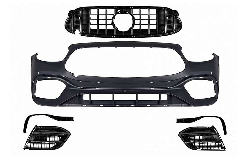Front Bumper equipped with central grille, PDC holders, central lower grille, side grilles, and flaps.