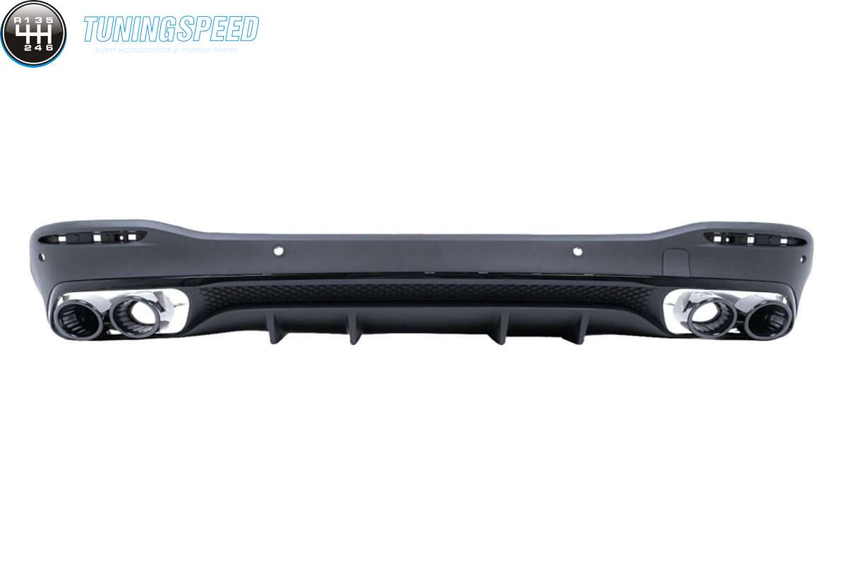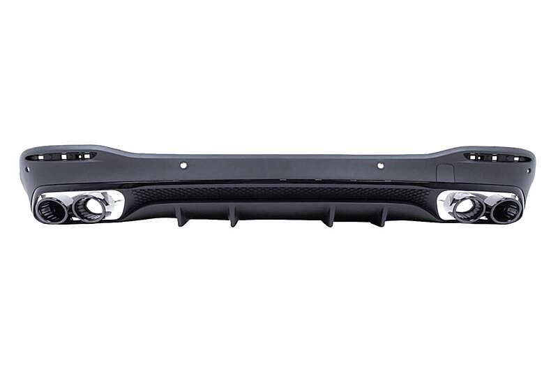 Rear bumper air diffuser crafted in high-quality ABS plastic with double outlets for twin-muffler tips