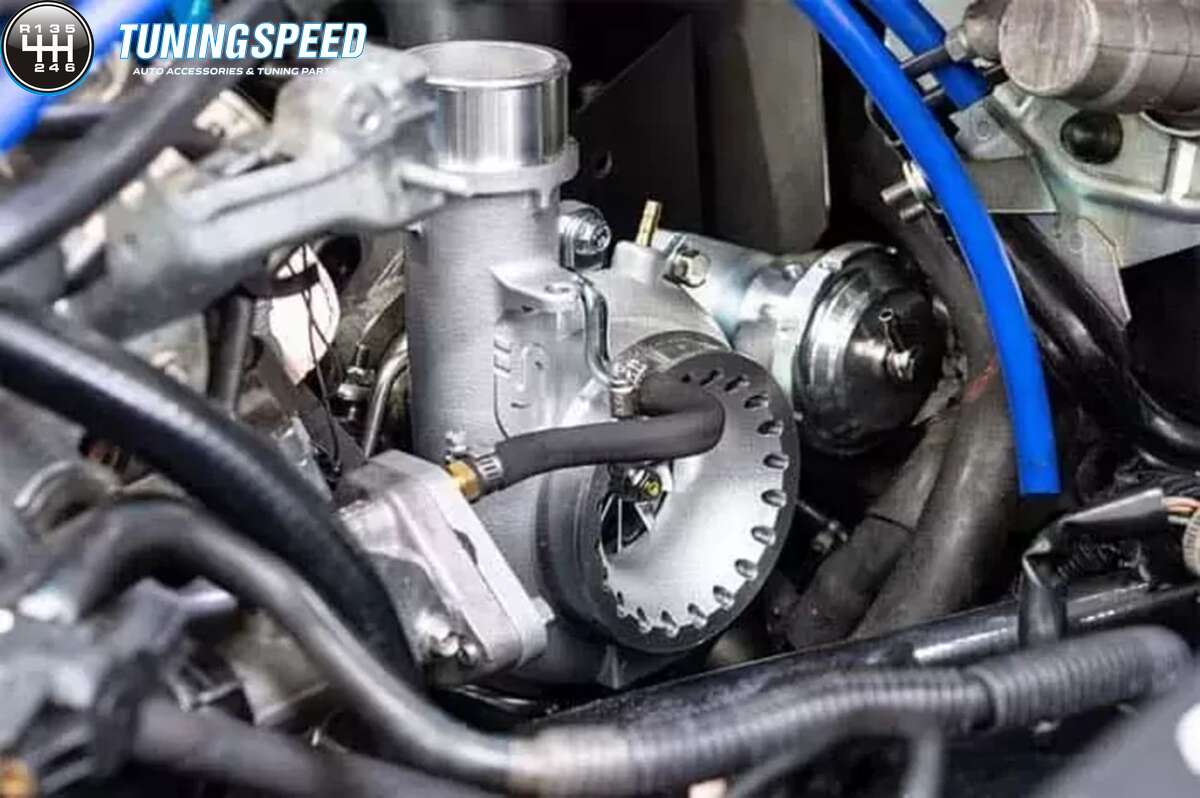 The turbine housing is designed with a 0.82 A/R to balance response and top-end power.