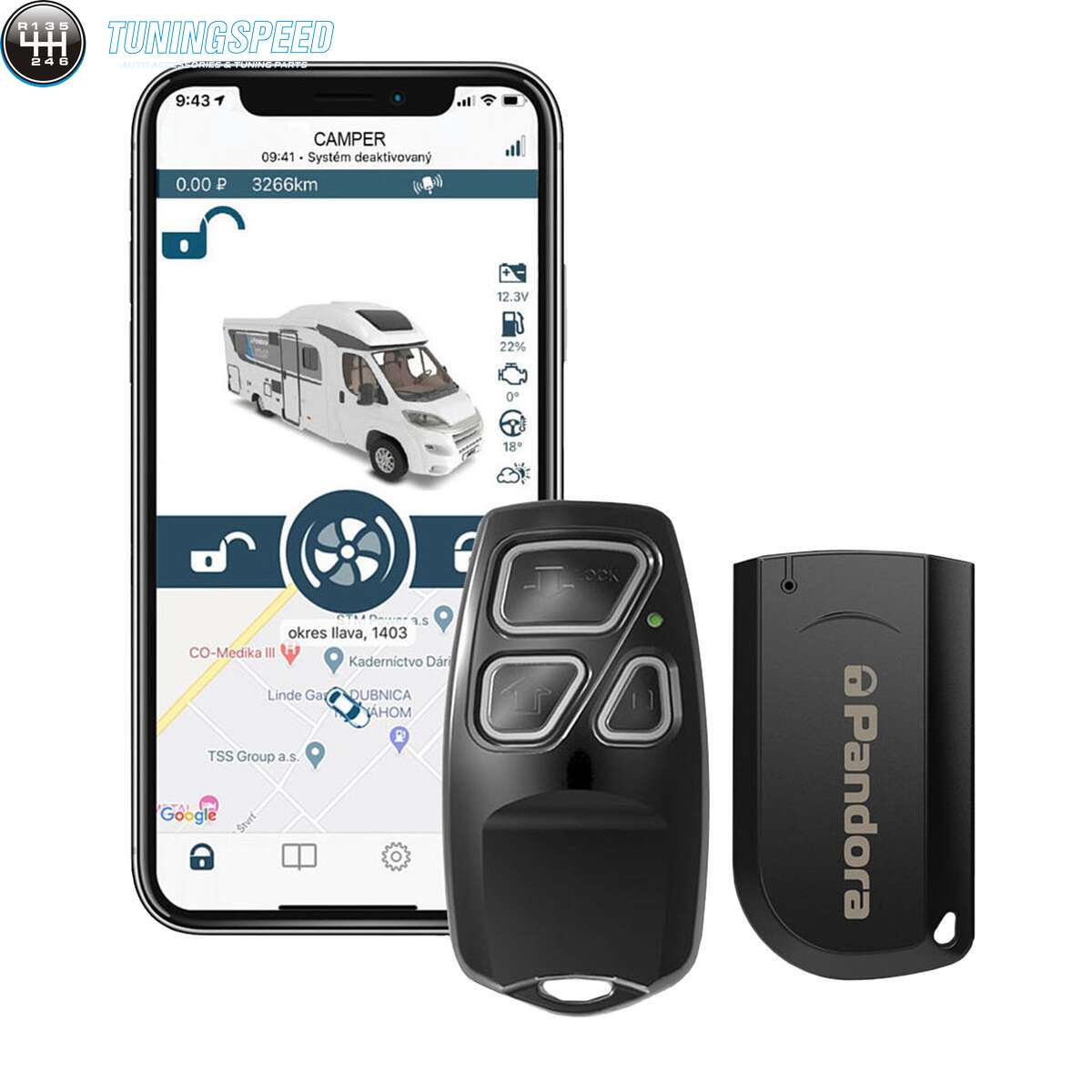 El Pandora CAMPER es un sistema de seguridad desarrollado para proteger las autocaravanas compactas como la VW T6 Caravelle o la Peugeot Traveller. Gracias a la conexión al bus de datos del vehículo y a un par de sensores inalámbricos , garantiza una seguridad fiable de todo el interior del vehículo, incluido el «espacio habitable». También existe un modo especial de protección contra intrusiones ( «QUEDATE EN CASA») durante la estancia de la tripulación en el interior del vehículo. El sofisticado algoritmo de los sensores magnéticos inalámbricos permite una protección completa incluso en caso de ventilación . Actualmente, esta función no está disponible en ningún sistema de la competencia. En este modo, el sistema no responde a las alarmas provocadas por el movimiento de personas en la autocaravana cerrada, pero la apertura de puertas o ventanas activaría inmediatamente una alarma acústica. El dispositivo también permite modificar la temperatura interior ya sea controlando el precalentador a través de la aplicación móvil o mediante la función de encendido remoto .